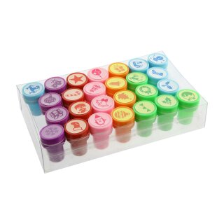 Kinderstempel, Weihnachten, 26 St, selbstempelnd, vers. Farben und Motive in PVC Box
