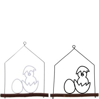 Metall Hänger "Palina", 2 Farben, H15,5cm, schwarz/weiß Motiv: Küken mit Ei