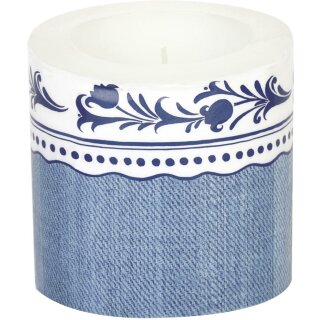 Windlicht Kerze " LUCA " ; weiß blau IHR, H 7,5 cm, D 7,5 cm